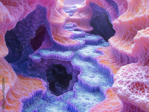The watermark will not be included on Wall mural.: Surreal digital landscape where aigenerated fractals blend with organic forms creating a dreamlike f
