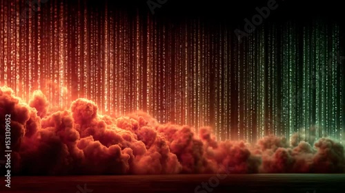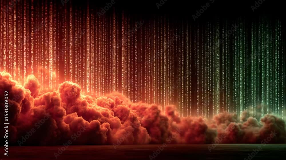 The watermark will not be included on Wall mural.: Surreal digital landscape: falling code and ethereal clouds in a tech-driven dreamscape