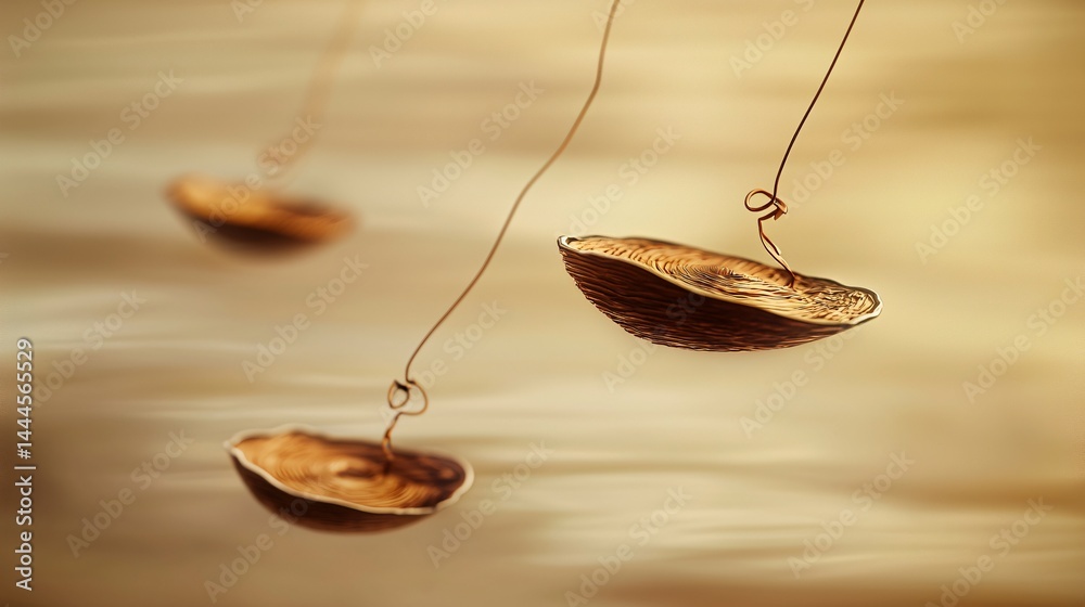 The watermark will not be included on Wall mural.: Surreal image of a bird hanging from a string in a dreamlike ambient light setting evoking a sense o