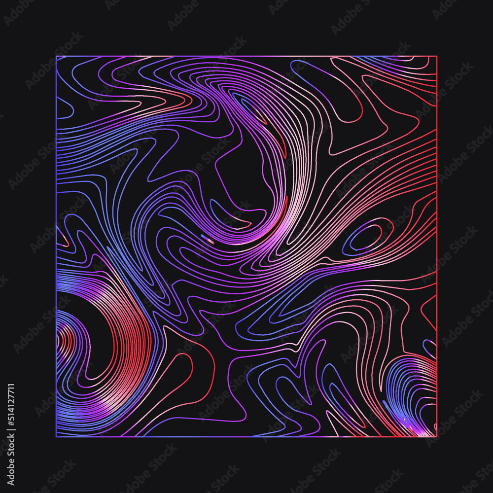 The watermark will not be included on Wall mural.: Surreal trippy abstract background with thin holographic flowing lines on a dark background -