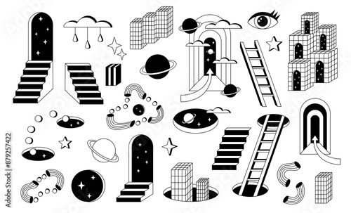 Surrealism elements set isolated on white background - psychedelic elements set - Wall mural