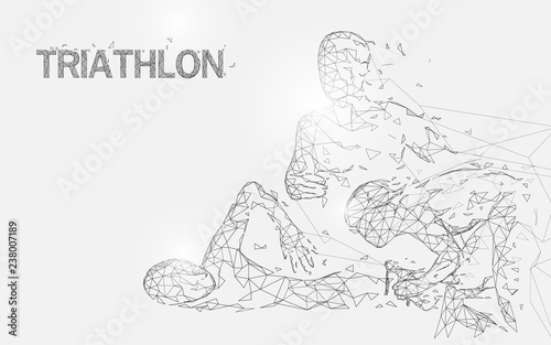 Wall mural : Swimming, cycling and running in triathlon game form lines, triangles and particle style design - ill