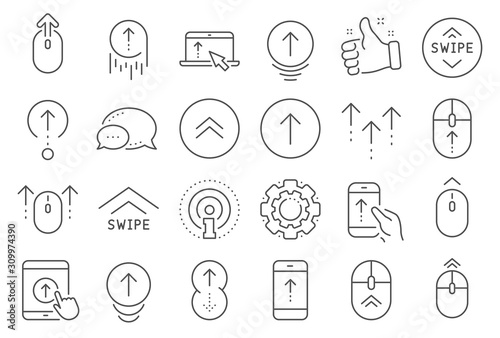 Wall mural : Swipe up line icons - scrolling mouse, landing page swipe signs - scroll up mobile device technology i