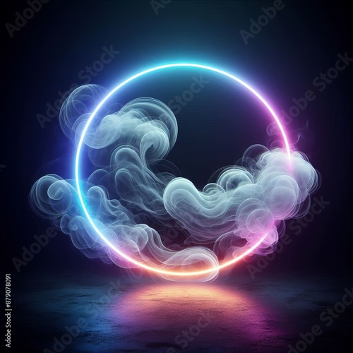 Wall mural : Swirling circles of light in a bright rainbow pattern create a dynamic abstract space isolated black