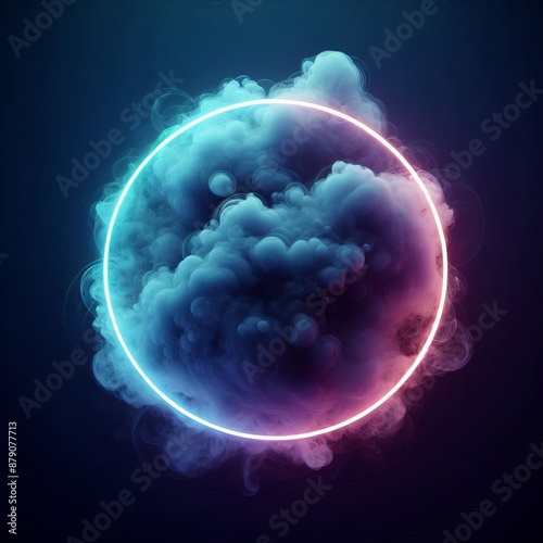 Wall mural : Swirling circles of light in a bright rainbow pattern create a dynamic abstract space isolated black
