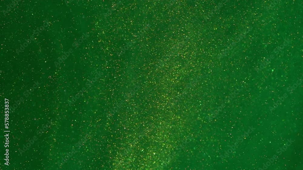 The watermark will not be included on Wall mural.: Swirling flow of golden dust particles in a green liquid - slow movement of floating gold particles o