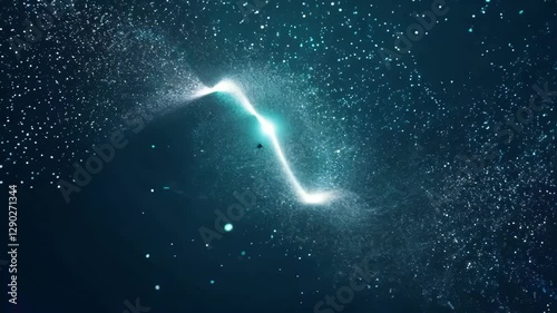 The watermark will not be included on Wall mural.: Swirling particles and beams of light create a mesmerizing display in a dark cosmic space - the capti