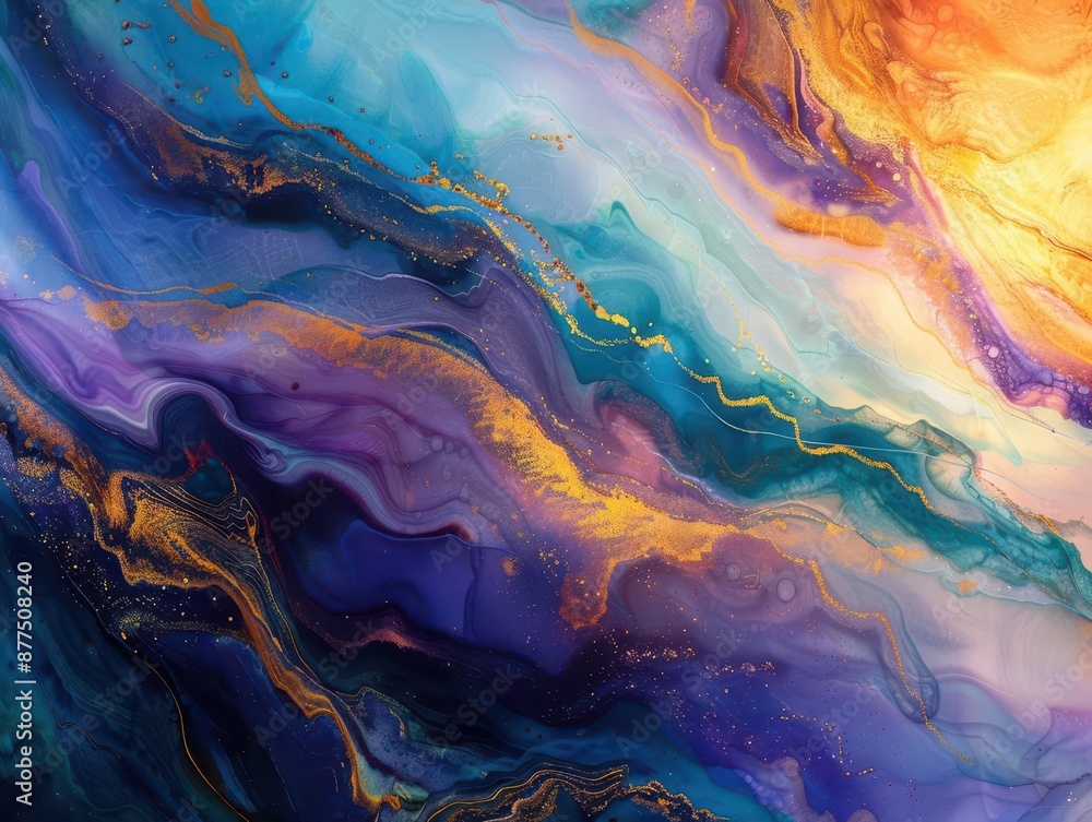 The watermark will not be included on Wall mural.: Swirling patterns of vibrant colors blend seamlessly creating a mesmerizing abstract composition ric