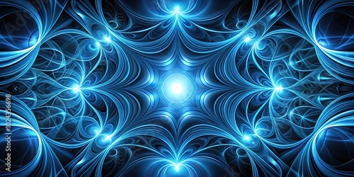 Wall mural : Symmetrical abstract swirling background in shades of blue and black with glowing light patterns