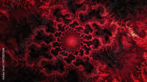 Wall mural : Symmetrical red abstract fractal backdrop featuring a black base color