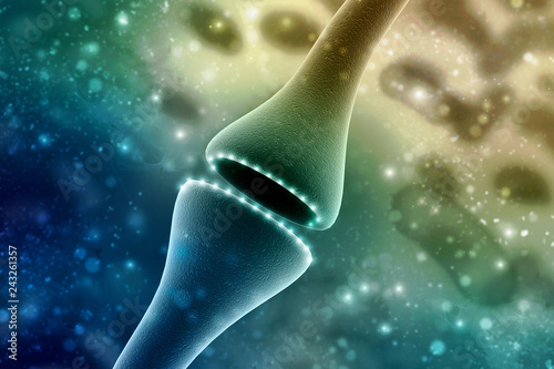 Wall mural synapse and neuron cells sending electrical chemical signals. 3d rendering - Wall murals Wall mural synapse and neuron cells sending electrical chemical signals. 3d rendering - Wall murals