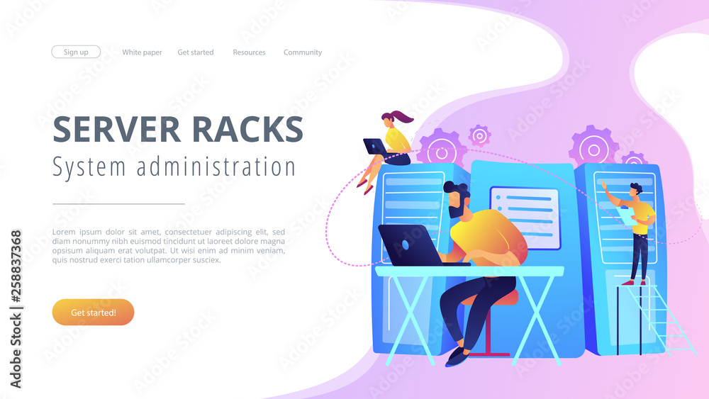 Wall mural : System administrators or sysadmins are servicing server racks - system administration, upkeeping, con