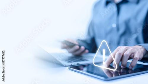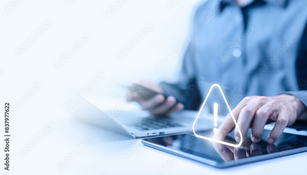 Wall mural : System failure, caution danger a computer is attacked, cyber error symbol warning sign, notification