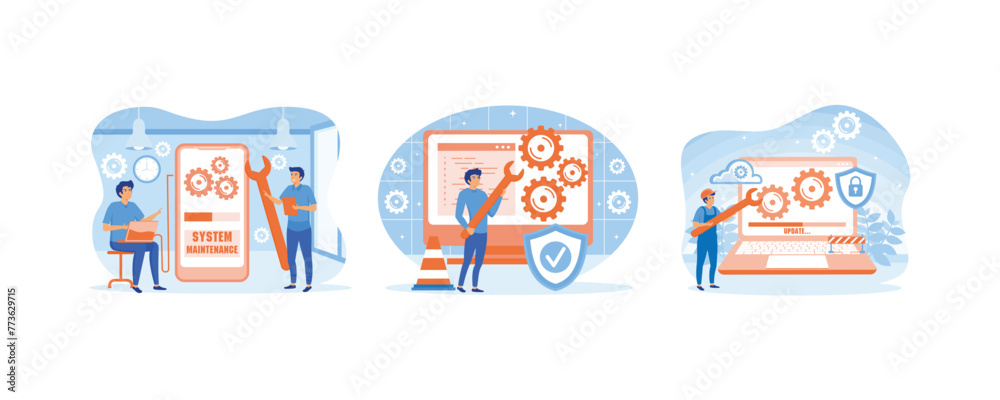 System maintenance concept - update program and application, technology - update program application, Wall mural