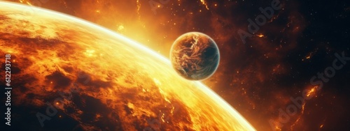Wall mural : Table collision of planets absorption of the planet by the sun banner poster planet sun mars in spac