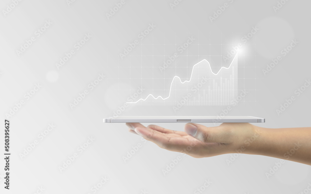 Wall mural tablet analysis business graph data diagram concept financial background with growth stock chart tra - Wall murals Wall mural tablet analysis business graph data diagram concept financial background with growth stock chart tra - Wall murals