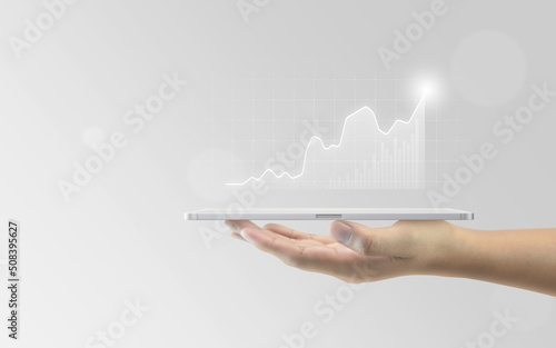 Tablet analysis business graph data diagram concept financial background with growth stock chart traWall mural