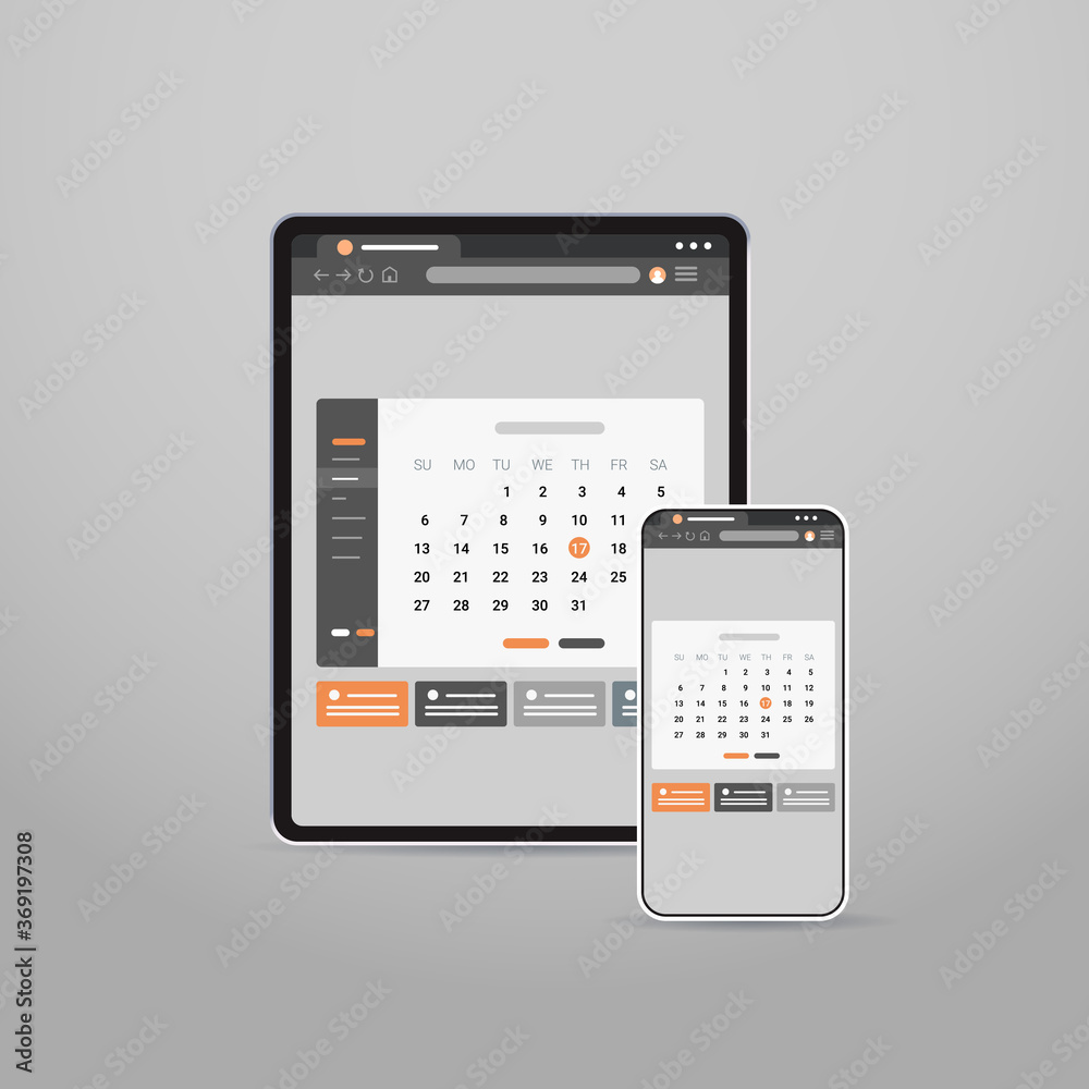 Tablet and smartphone screns cross platform application development adaptive user interface responsiWall mural