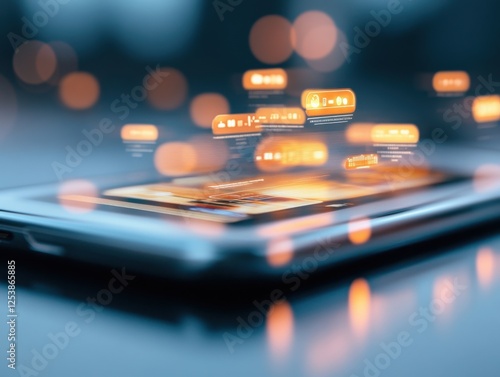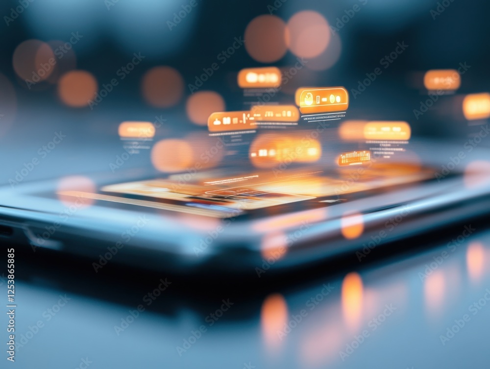 Wall mural tablet displaying floating digital interface - Wall murals Wall mural tablet displaying floating digital interface - Wall murals