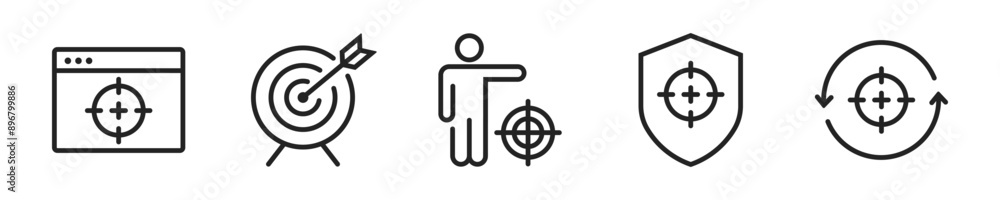 Target business icon set - set of 5 outline icons related to business target - linear icon collection - Wall mural