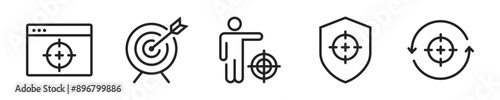 The watermark will not be included on Wall mural.: Target business icon set - set of 5 outline icons related to business target - linear icon collection -