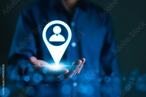 Wall mural : Targeted marketing and customer strategy concept - a person holds icon of a location marker with user