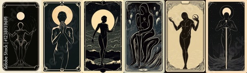 The watermark will not be included on Wall mural.: Tarot illustrations in modern style