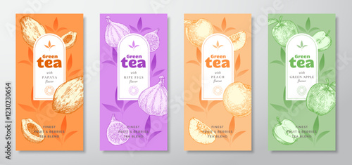 The watermark will not be included on Wall mural.: Tea labels vector set - fruit and berries tea packaging design layouts bundle - modern typography, han