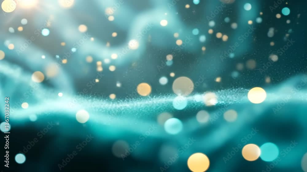Wall mural teal abstract background with shimmering bokeh lights gradient and sparkle