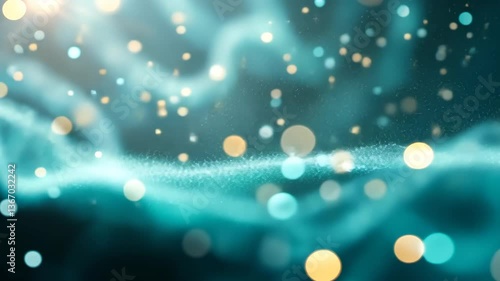Wall mural : Teal abstract background with shimmering bokeh lights gradient and sparkle