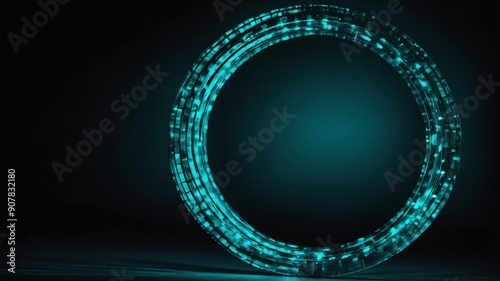 Wall mural : Teal glowing circle abstract in black background copy space design