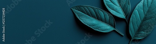 The watermark will not be included on Wall mural.: Teal leaves on dark blue, nature background