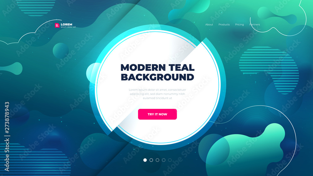 Wall mural teal liquid color background design for landing page site with circle. fluid gradient shapes composi