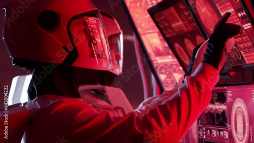 The watermark will not be included on Wall mural.: Team of astronauts in a space suits aboard the mars station - a crew of cosmonauts piloting the space