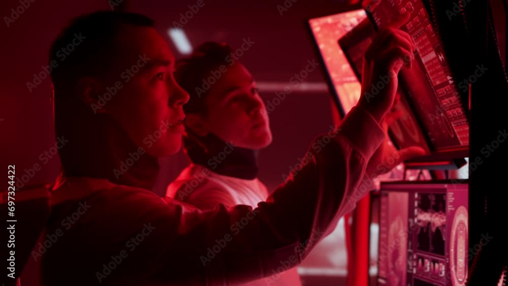 The watermark will not be included on Wall mural.: Team of astronauts in a space suits aboard the mars station - a crew of cosmonauts piloting the space