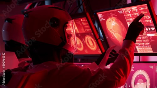 The watermark will not be included on Wall mural.: Team of astronauts in a space suits aboard the mars station - a crew of cosmonauts piloting the space
