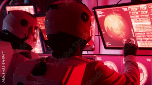The watermark will not be included on Wall mural.: Team of astronauts in a space suits aboard the mars station - a crew of cosmonauts piloting the space