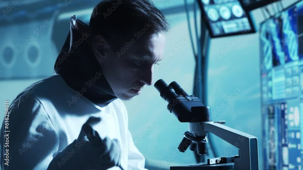 The watermark will not be included on Wall mural.: Team of astronauts in a space suits aboard the orbital station - a crew of cosmonauts piloting the sp