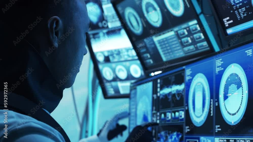 The watermark will not be included on Wall mural.: Team of astronauts in a space suits aboard the orbital station - a crew of cosmonauts piloting the sp