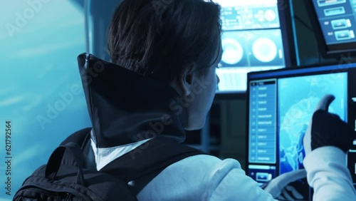 The watermark will not be included on Wall mural.: Team of astronauts in a space suits aboard the orbital station - a crew of cosmonauts piloting the sp