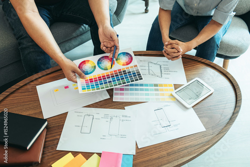 Team of creative web/graphic designer planning, drawing website ux app for mobile phone application Wall mural