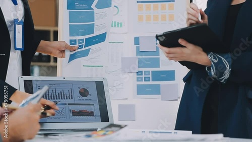 The watermark will not be included on Wall mural.: Team of creative web graphic designer planning, drawing website ux app for mobile phone application