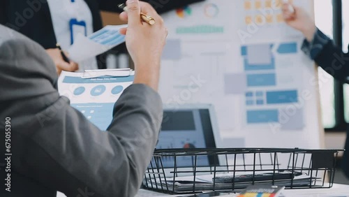 Team of creative web graphic designer planning, drawing website ux app for mobile phone application Wall mural