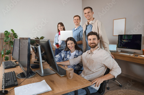 The watermark will not be included on Wall mural.: Team of programmers working in office
