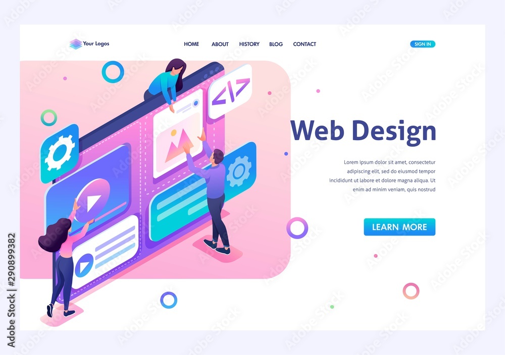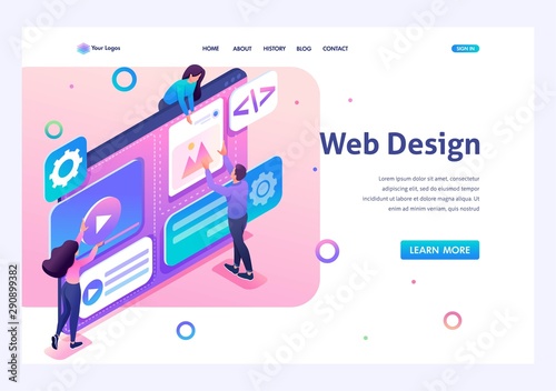Wall mural team of specialists is working on the creation of web design. concept of teamwork. 3d isometric. lan