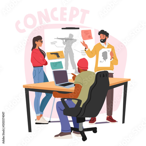 The watermark will not be included on Wall mural.: Team of video game developers brainstorming, searching and creating idea and concept of new app