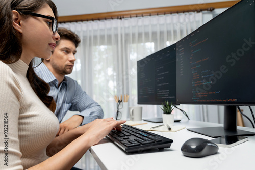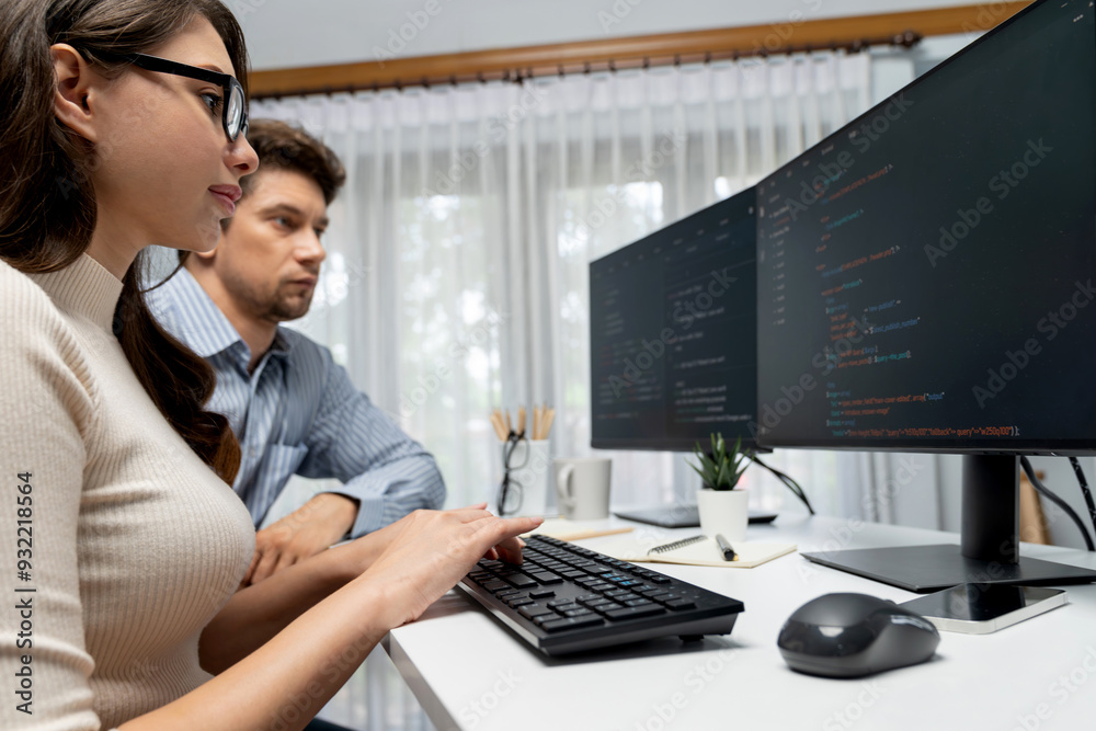 The watermark will not be included on Wall mural.: Team skilled developers program thinking newest coding creative website planning software project on