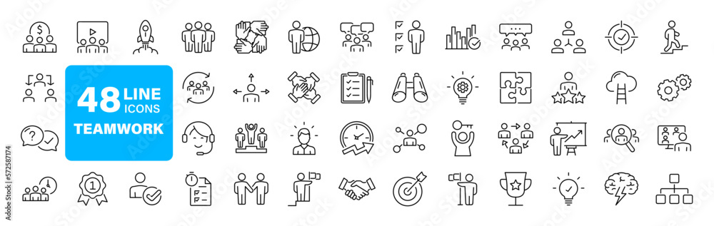 Wall mural : Team work set of web icons in line style - teamwork and business cooperation icons for web and mobile