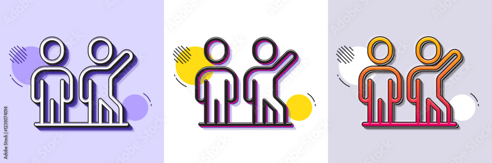 Teamwork line icon - halftone dotted pattern - gradient icon with grain shadow - team work together sigWall mural