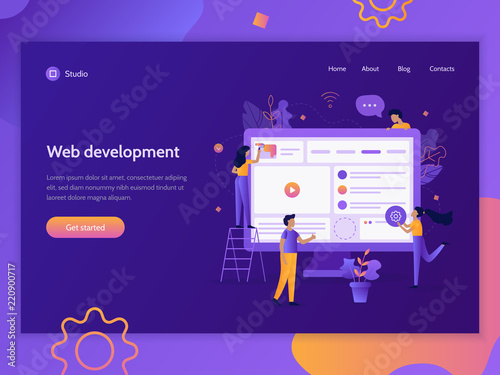 Wall mural teamwork project. the creation of a web site. modern web banner template. website development. flat  - Wall murals Wall mural teamwork project. the creation of a web site. modern web banner template. website development. flat - Wall murals